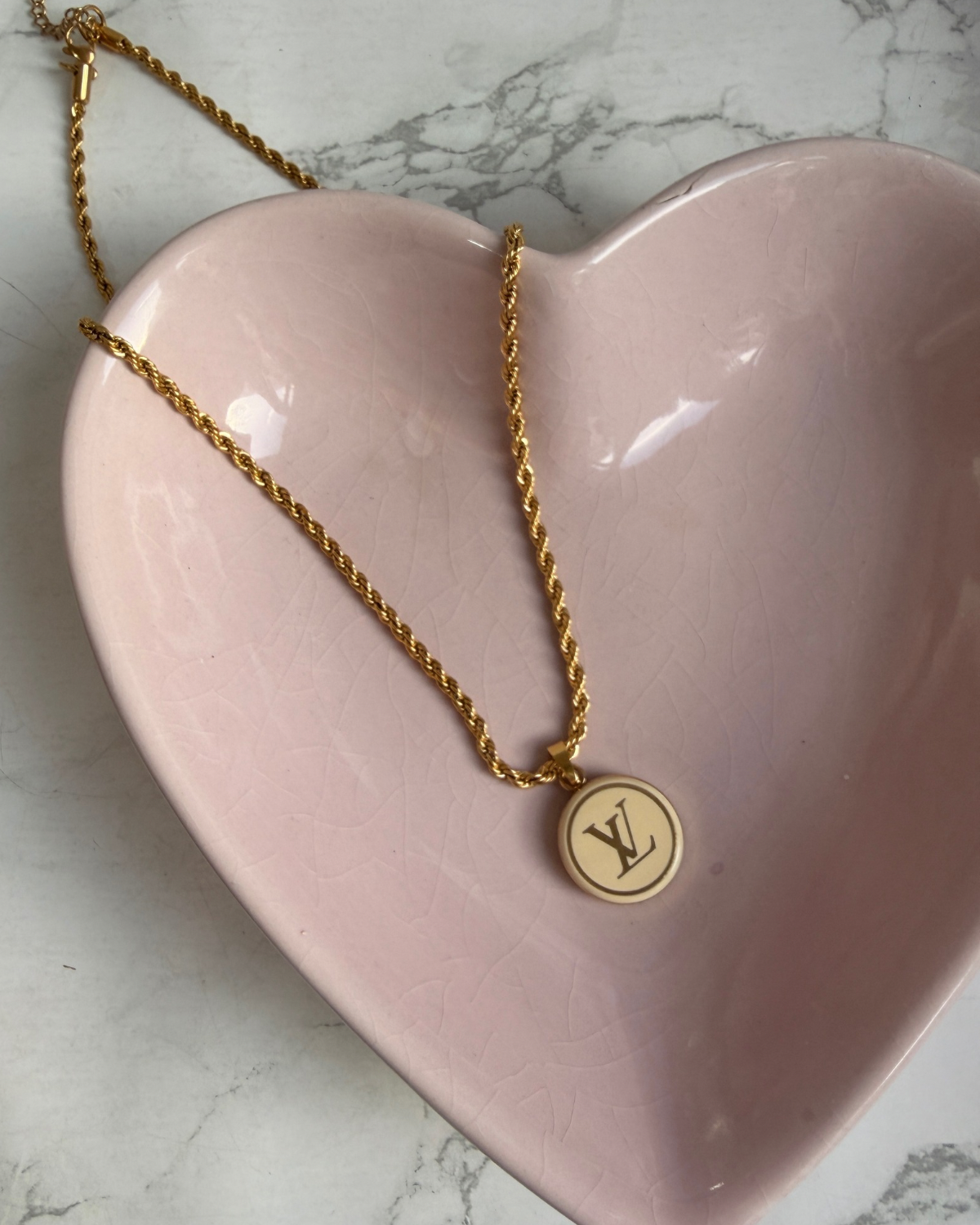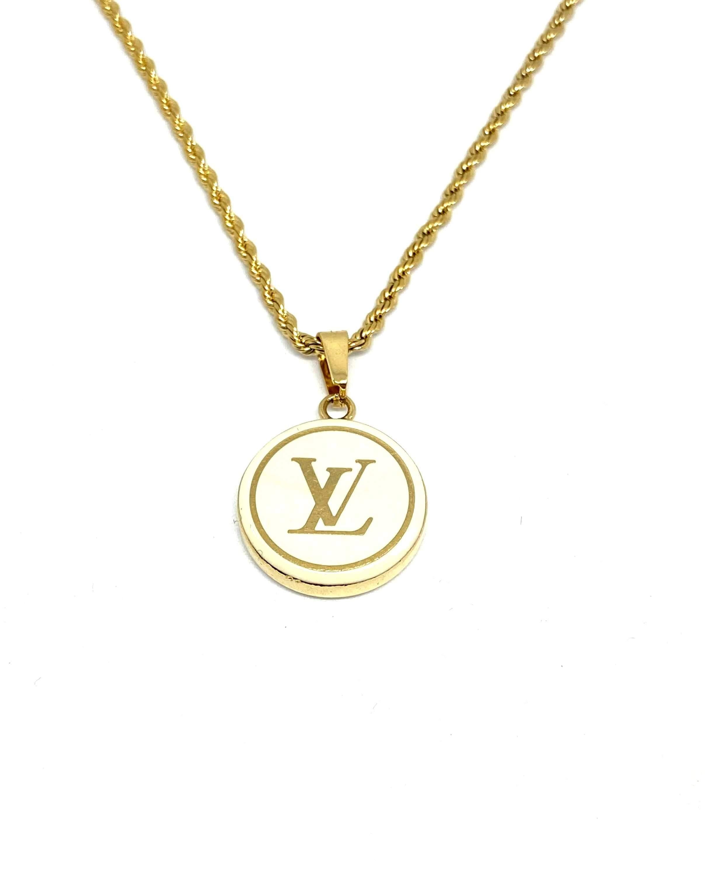Genuine repurposed vintage LV round pendant Necklace with custom chain. Extremely limited production.